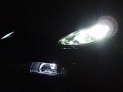 でも、効果はこのとおり。しかもキセノンヘッドライトよりも青白い。もう少し色温度が低くてもよかったかな。