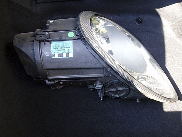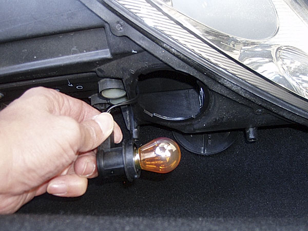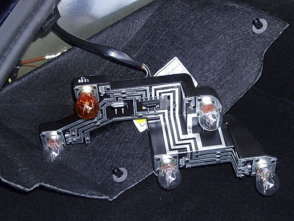 ボクスターの取扱説明書を見ると、ランプ類の交換方法が書いてあります。まずはテールランプ。トランクルーム側からリアコンビネーションランプの基板を外すことができます。アンバーがウインカー球でこれをSilver Visionに交換するだけでOK。もちろん車検にも対応します。