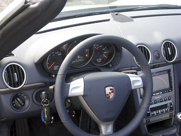 この日は、ルボラン別冊「THE PORSCHE BOOK 2008」の取材で、何はさておき“素ボクスター”に乗ってしまいました。印象は想像どおりで、アイドリングでクラッチをつないでもトルクの細さを感じないし、一方、回したときには4000rpmあたりからレブリミットの7200rpmまで気持ちよく回ってくれて、マニュアルで楽しむならこれで十分という感じ。標準の17インチタイヤを履いた試乗車は軽快感抜群で、05モデルのボクスターSを手放したばかりだというのに、思わず「コレ欲し〜い!」と口にしてしまった(笑)
