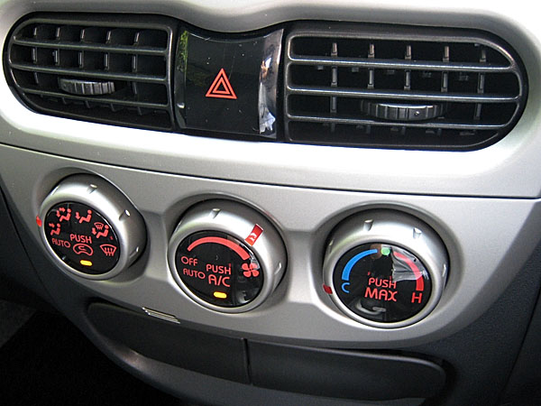 i-MiEVの試乗会に参加し、街中と首都高速を1時間ほど走りました。試乗会のベースはなぜか浦安。メーターが某有名ネズミに見えるのは気のせいでしょうか?(笑) 右耳に表示されているのが航続距離です。フル充電で60km!?と思ったら、直前の走行状況によって航続距離が変わるそうで、試乗会では急加速などを繰り返すので、こんな数字になっているんでしょう。裏を返せば、ひどい走り方をしても60kmは行けるというでしょうか?