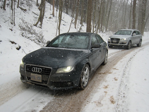 アウディの新型A4やA5、Q7で冬のカナダをドライブ。写真はA4 3.0TDIクワトロ。雪が似合います。