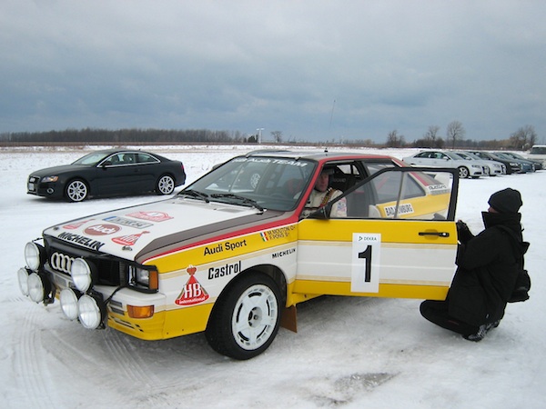 まずは小さい空港の特設コースでアウディクワトロに同乗。ドライバーは……